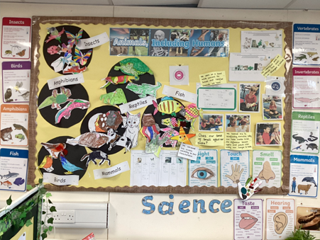 Our work on Dinosaurs linked to our Science which focussed on Animals including humans. They used their scientific enquiry skills of identifying and classifying animals into the following groups; Reptiles, Insects, Amphibians, Birds, Mammals and Fish. We learnt about the characteristics of each group and whether an animal was a Carnivore, Herbivore or an Omnivore.