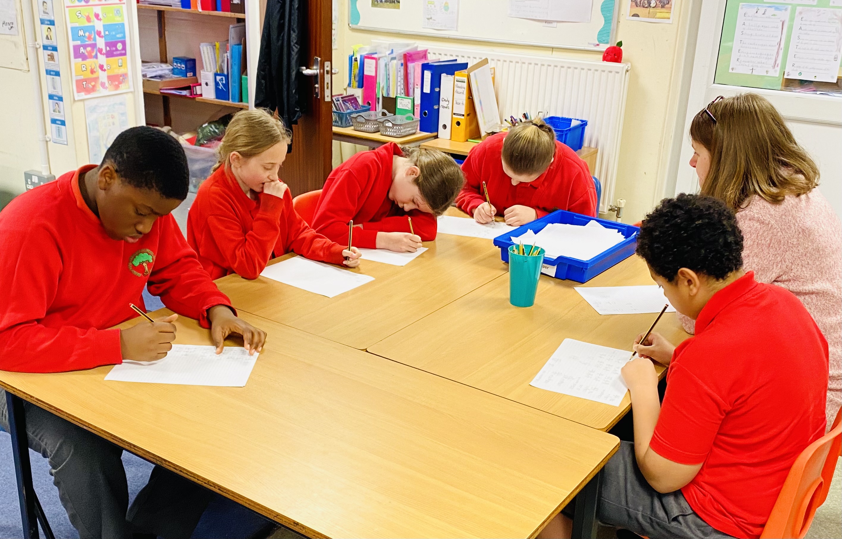 Years 3-6 go with Miss Freeman, Year 4 teacher, to work on foundational skills that they may need to focus on - times tables, handwriting, spelling, maths..., or to focus on stretch and challenge tasks. Each child has a bespoke programme depending on their needs.