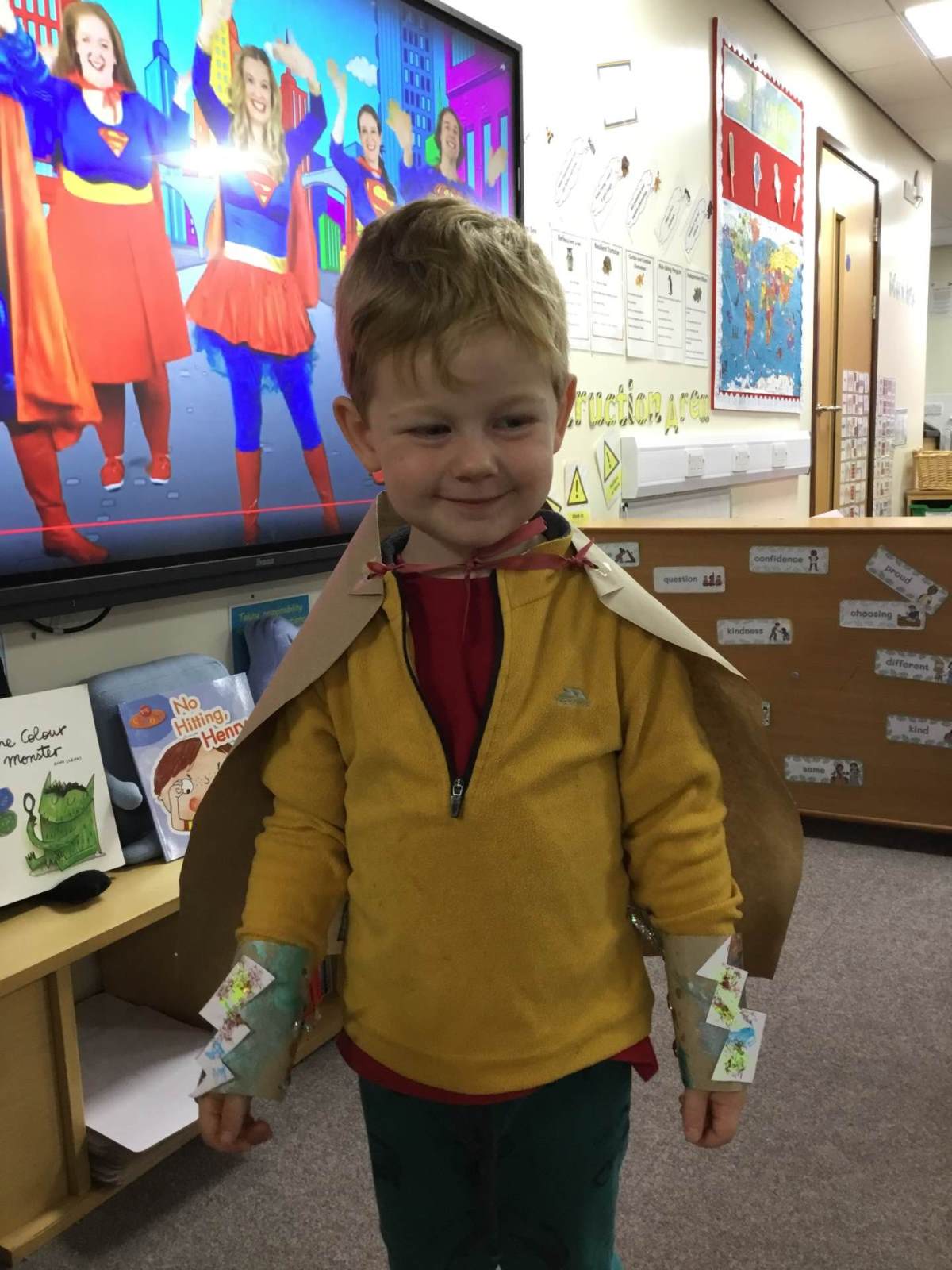 This half term ended with Superhero week. They made cuffs, a ‘shape’ themed cape, stick puppets, completed an obstacle course and learned a superhero song. They also did lots of Maths superhero challenges as well as a shape mission to find four sided shapes. Their learning was shared in their very first whole school sharing assembly.