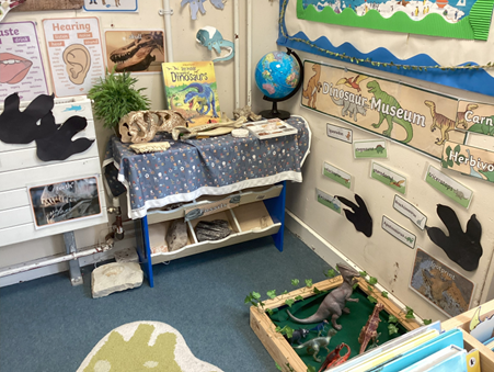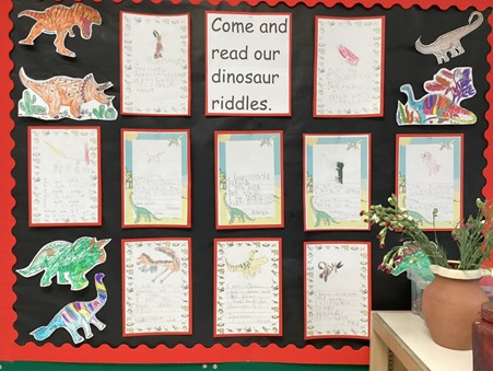 Year 1 have enjoyed a topic about dinosaurs. In English they wrote sentences to describe dinosaurs, they learned and performed poems about dinosaurs and also found out many interesting facts. Year 1 have loved exploring our dinosaur museum role play area. Year 1 have worked very hard practising their new phonemes in phonics and have written sentences with beautiful handwriting.